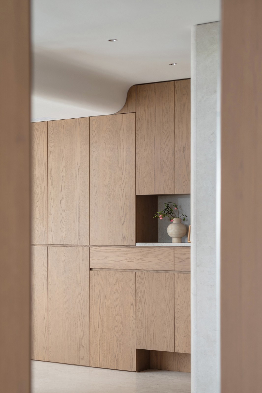 住宅中的阳角处多采用圆边圆角设计,使空间更圆润,也更具安全感。