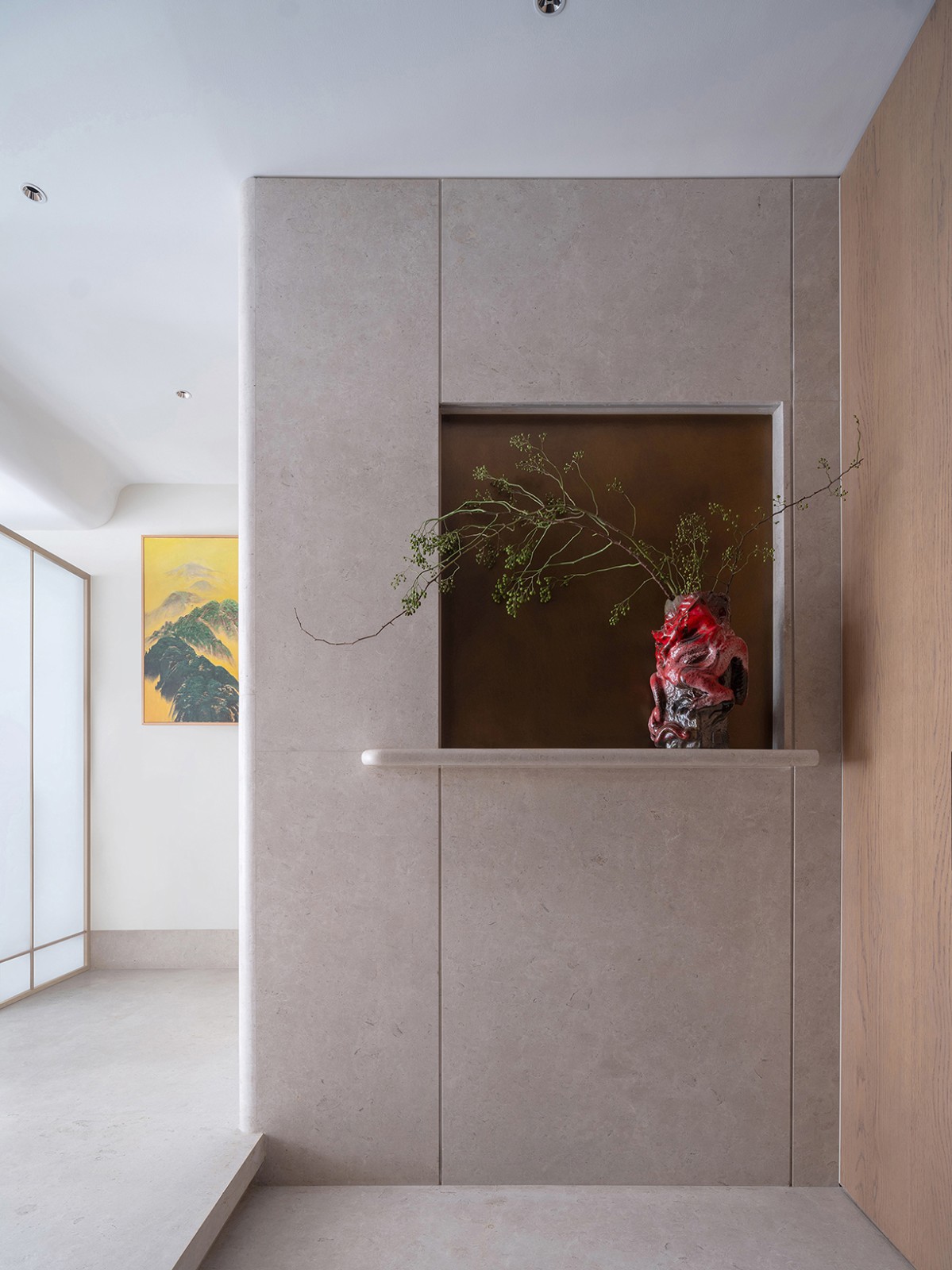 我们保留了许多广东人日常的生活习性。比如神台的安置,这是广东家庭中较常见的功能配置。在设计上与空间风格相融,既不突兀,又保留了对传统文化信仰的尊重。