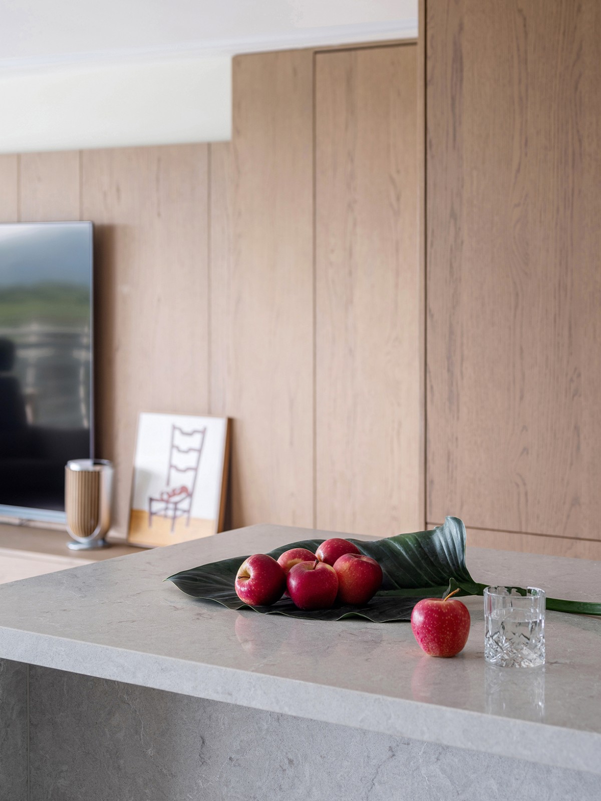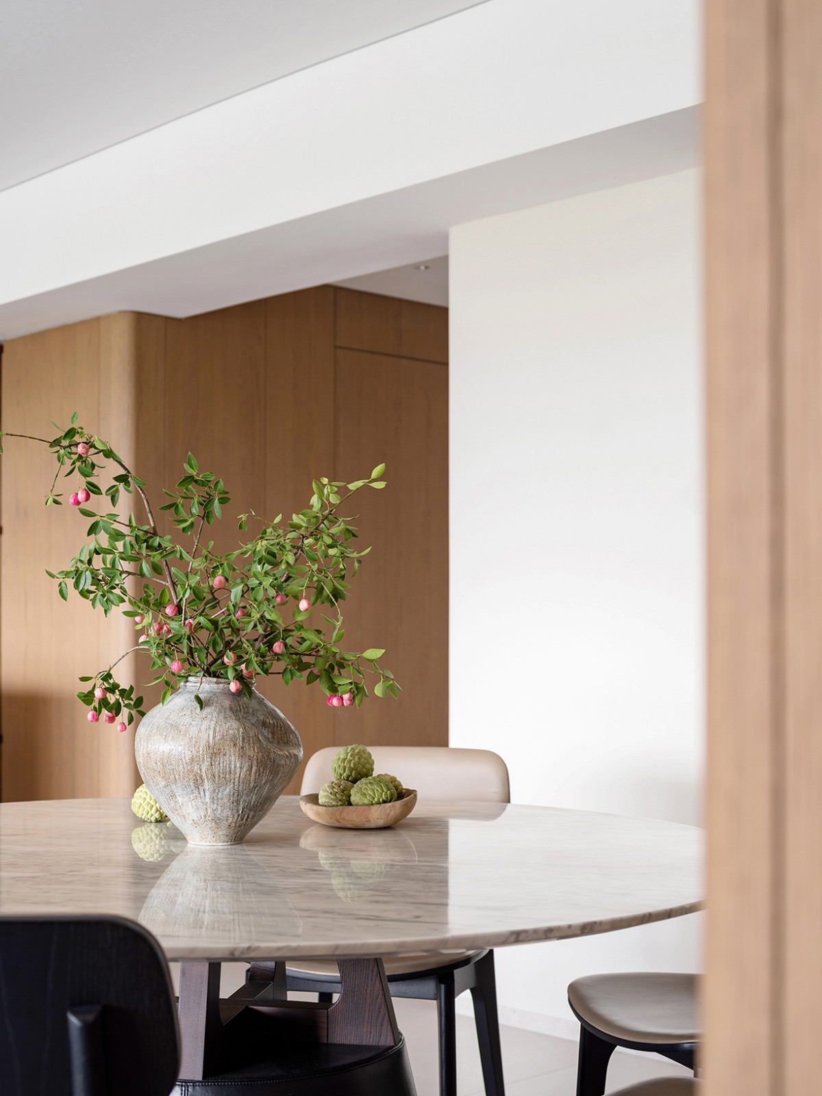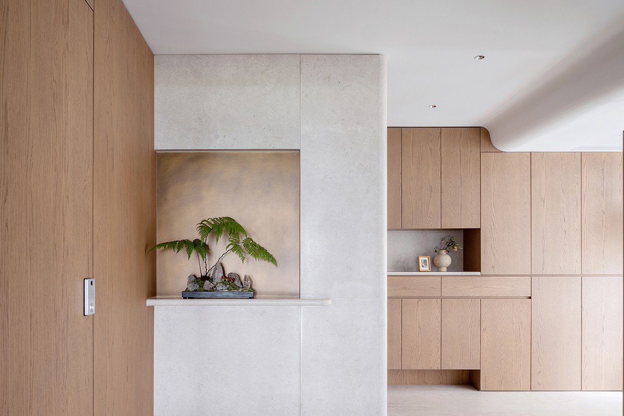 材质的选择,往往是对空间情绪与风格的直接呈现。屋主偏爱木质的自然质感,因而在材质选择上,我们选用了橡木,木质温润且沉稳,贯穿至每个空间,既保证空间的整体感,也为空间带来亲和力。搭配石头温润的柔光表面,人在触摸时能感受到不同材质所属的温度与细腻。