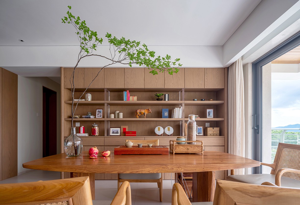 我们构筑的不仅是居所,更是一种生活方式,它映射了屋主一家人的生活日常。这里,东方的圆桌与茶台,西方的岛台和西厨,中西方文化元素在同一个空间中碰撞交融。